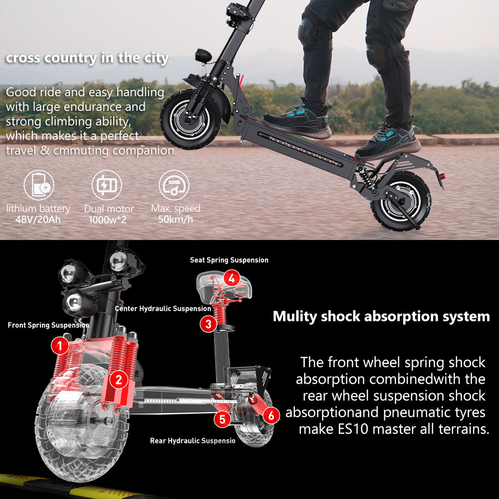 Get ready to experience the thrill of a lifetime with the iENYRID ES10 Electric Scooter! - boasting dual moter and 2400W of raw power, it''ll take you to your destination with its strong off-road performance! And when you''re done riding, the foldable design won't take up much space. What are you waiting for? This scooter is your ticket to a wild ride!